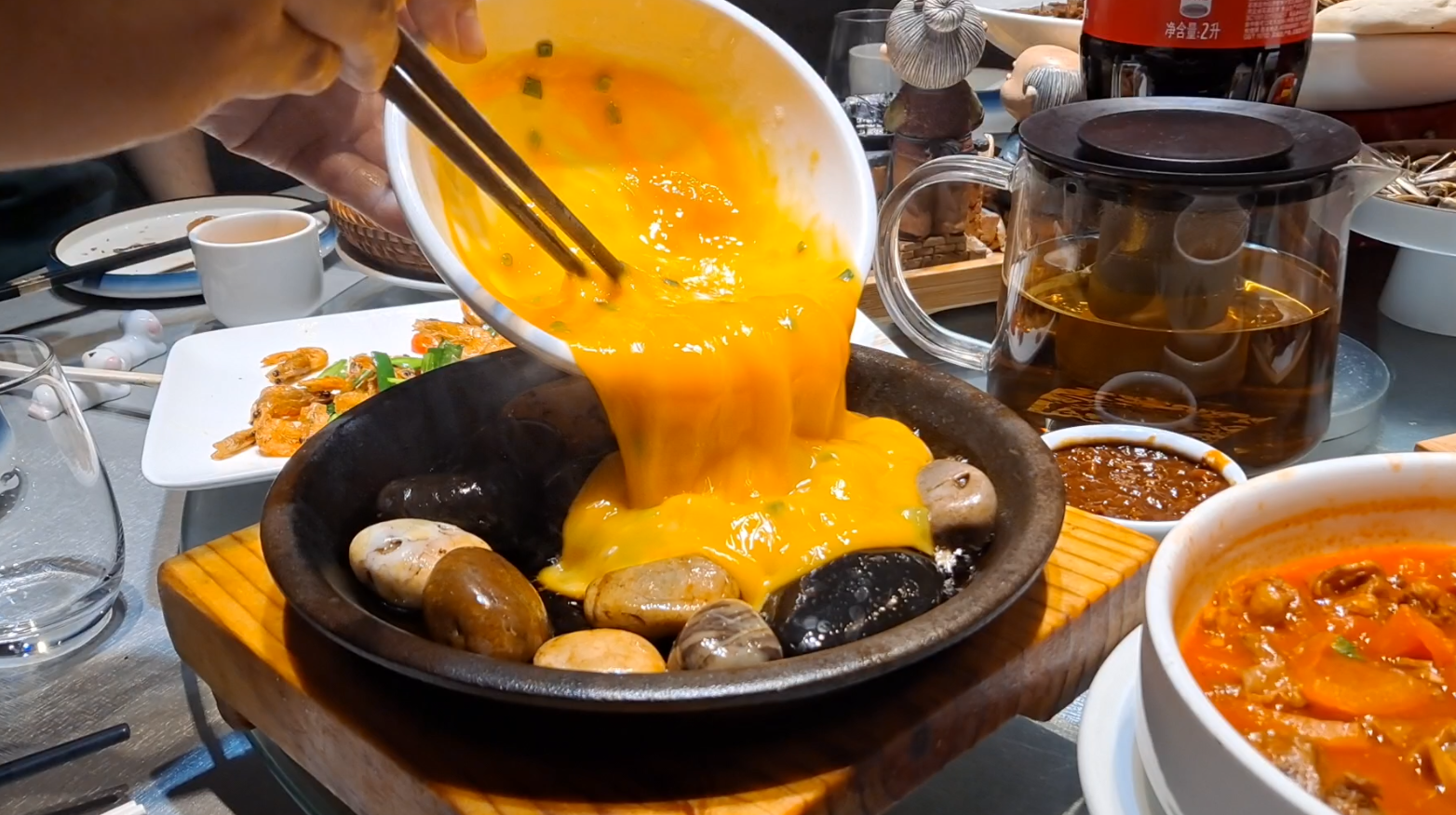 Tiu manĝo montrata en la filmeto nomiĝas "ovoj frititaj sur ŝtonetoj".