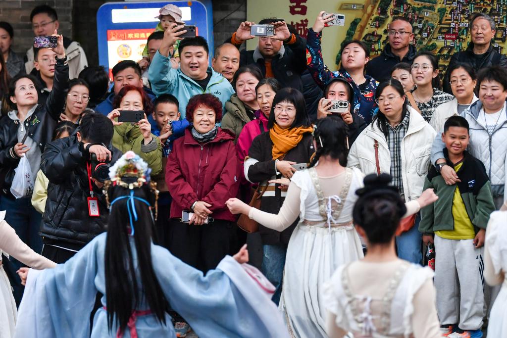 Por revigligi la antikvan urbon, oni lanĉis protektan kaj renovigan projekton en 2017. Oni plibonigis infrastrukturojn kaj stratajn funkciojn kaj venigis pli ol 600 butikojn entrepreni en la loko. Por subteni la disvolviĝon de lokaj nemateriaj kulturaj heredaĵoj, la urbo efektivigis politikojn por redukti lupagon por la butikoj rilate al kulturaj heredaĵoj. La malfermo de pli ol 20 butikoj pri pastostatuetoj, lignoskulptado kaj aliaj metiartoj prosperigis turismon. Samtempe, kulturaj prezentadoj, kiel operoj, dancoj kaj popolaj tradicioj, kaptis la atenton de multaj turistoj, kiuj komence planis nur fari fotojn. Nun ili povas ĝui la spertojn en la antikva regiono. Redaktoro: Xie Ruifeng Facebook: Ĉina Fokuso / China Focus - Esperanto Twitter: El Popola Chinio WeChat: Skani la du-dimensian kodon por legi EPĈ en WeChat