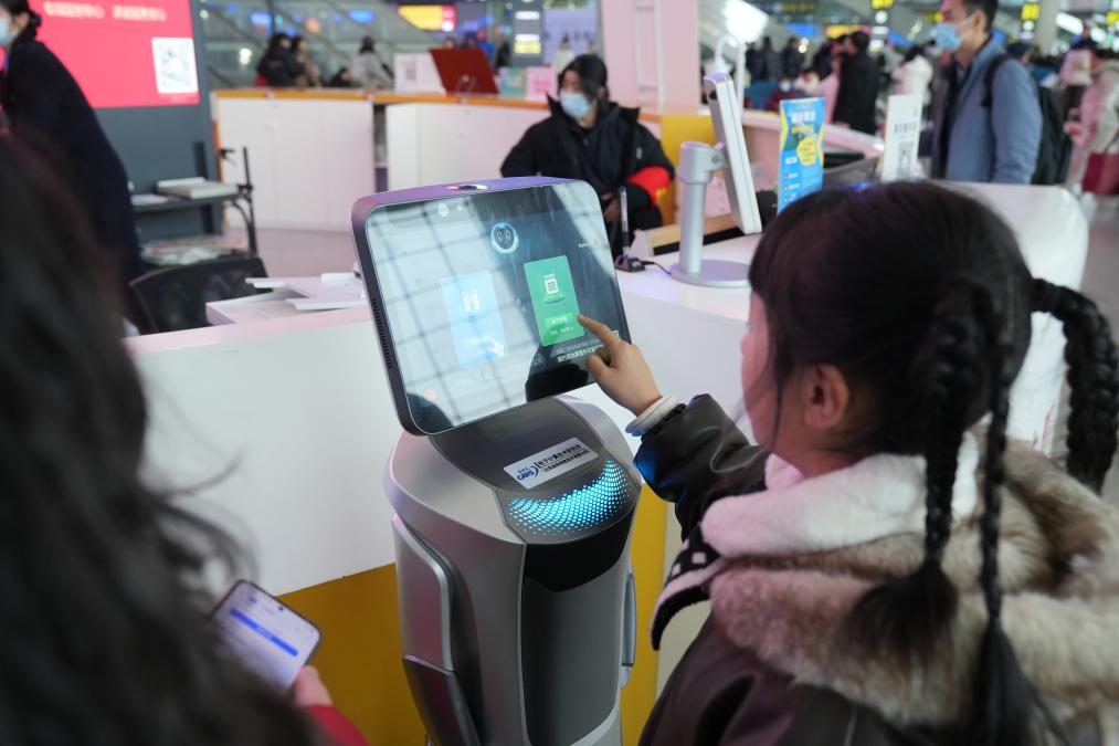 En la unua tago de la printemp-festa pasaĝertransportado de 2026, robota "konsultisto" ekfunkciis en la fervoja stacidomo Orienta Chengdu en la urbo Chengdu, Sichuan-provinco. Kiel fervoja informroboto, ĝi povas montri la detalajn informojn de la pasaĝera bileto, tuj post kiam la pasaĝero skanas sian identigilon aŭ sian vizaĝon.