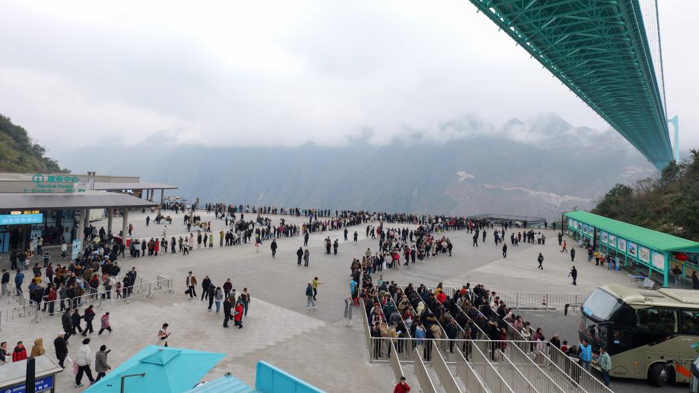 La kanjona ponto Huajiang situas sur Liu'an-aŭtovojo en la provinco Guizhou de sudokcidenta Ĉinio, ĝi estas populara turisma celloko pro la renomo "monde plej alta ponto". Statistikoj montras, ke dum la feritagoj de la Printempa Festo de 2026, sole la servareo proksime al la ponto jam ricevis 270 mil homfojojn da vizitantoj kaj pli ol 70 mil veturilojn. Inter la turistoj, 75% estis memveturaj, kaj pli ol duono el ili venis de aliaj provincoj.