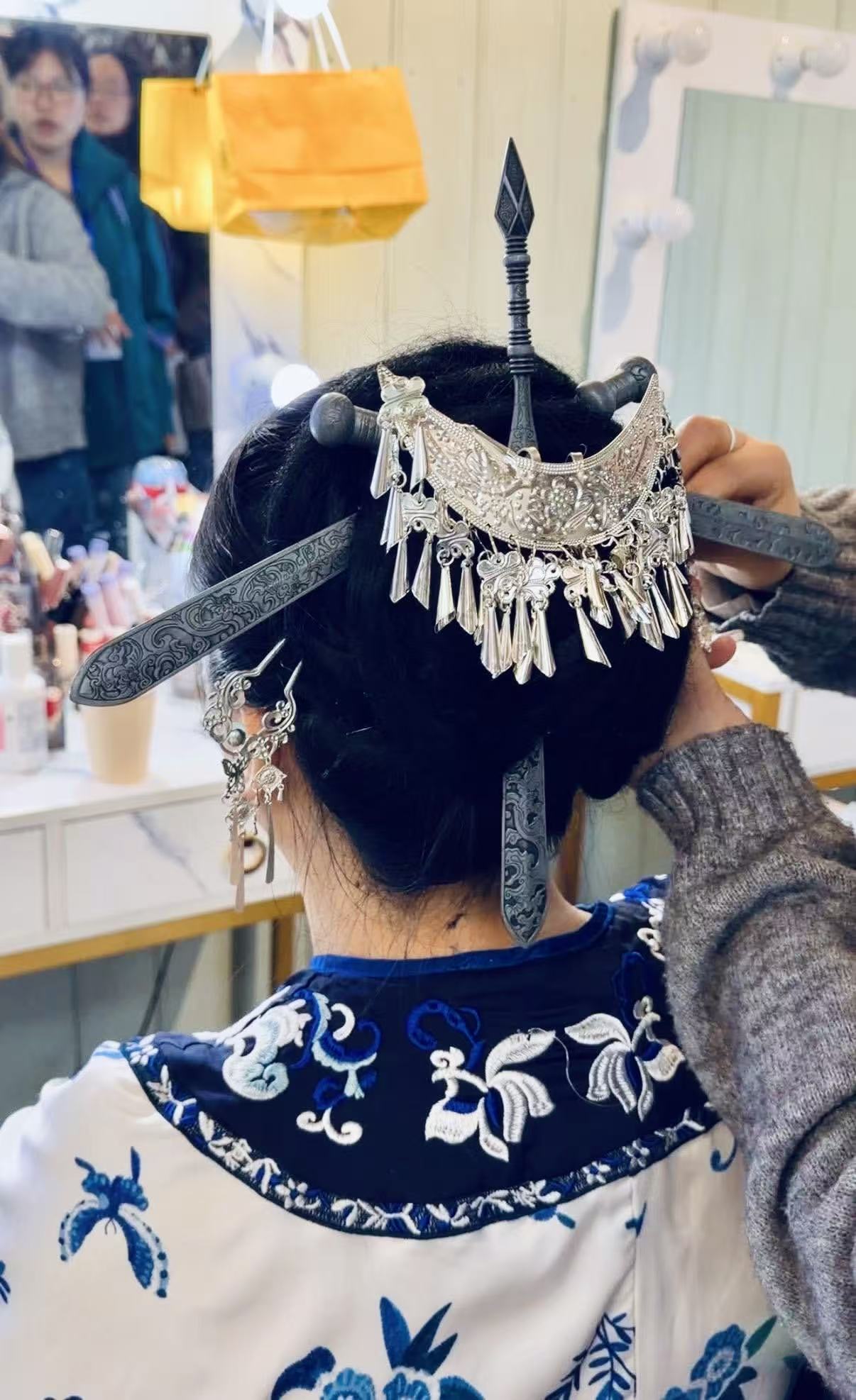 Tempo pasis, kaj la batalfunkcio iom post iom malaperis, la "tri glavoj" fariĝis tradicia ornamaĵo. Dum la dinastio Qing kaj komence de la 20-a jarcento, ili estis ofta parto de la doto de junaj virinoj en Fuzhou, kiam ili edziniĝis. Delikataj arĝentaj harpingloj ne nur montris la lertecon de lokaj metiistoj, sed ankaŭ reflektis la fierecon kaj fortan karakteron de lokaj virinoj. Tamen en la 1930-aj jaroj tiu kutimo estis konsiderata malmoderna kaj iom post iom malaperis. La bildo de la tri harpingloj restis ĉefe en tradicia teatro kaj en la memoroj de kelkaj maljunaj virinoj en kamparaj regionoj. En la lastaj jaroj la "tri glavoj" komencis reaperi per kulturaj kaj turismaj projektoj. En 2024 la tradicio estis enmetita en la listo de nemateria kultura heredaĵo de Fuzhou-urbo, kio markas gravan paŝon por konservi ĝin. Hodiaŭ la tri glavoj ne estas nur malnova harornamaĵo, sed ankaŭ simbolo de la forto, sendependeco kaj kultura fiereco de virinoj en Fuzhou-urbo. Se la florkronoj de Quanzhou montras mildan kaj elegantan belecon, la "tri glavoj" de Fuzhou rakontas alian historion pri kuraĝaj virinoj pretaj protekti sin mem, sian familion kaj sian hejmlandon. Verkis: Bui Hai Mung Facebook: Ĉina Fokuso / China Focus - Esperanto Twitter: El Popola Chinio WeChat: Skani la du-dimensian kodon por legi EPĈ en WeChat
