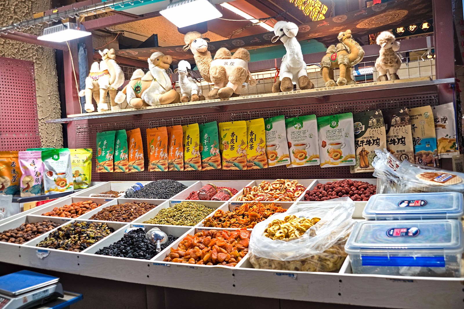 En la bazaro ankaŭ eblas aĉeti specialaĵojn de la regiono, kiel sekigitaj fruktoj, laktaĵoj kaj sekigita viando.