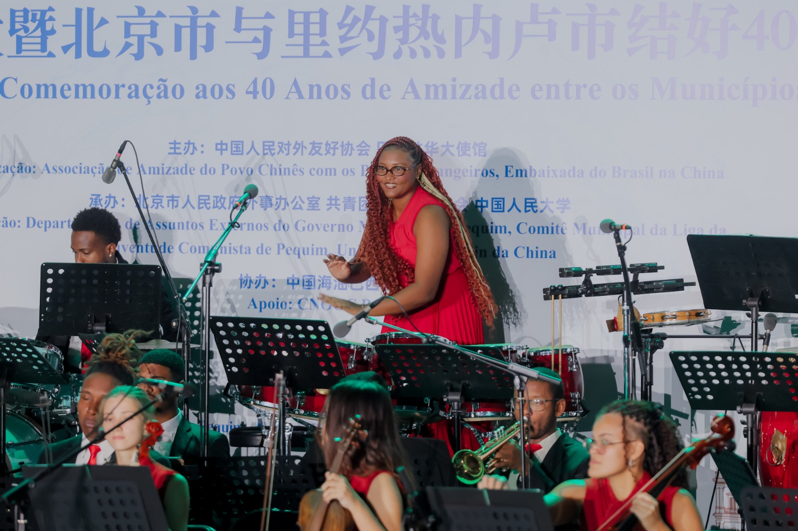 Orkestro Forte de Copacabana koncertas ĉe Universitato Renmin de Ĉinio. "La celo de la orkestro estas kapabligi la junulojn, por ke ili eniru profesiajn orkestrojn, orkestrojn de la armeo, kaj sekvu la profesian karieron per muziko. Feliĉe, dum la jaroj, multaj studentoj ligiĝis en muzikajn kaj kulturajn projektojn, persistis en la akademio, kaj kelkaj eĉ doktoriĝis. Ĉi tio estas nia plej granda misio," klarigis Márcia. Malgraŭ ĝia nepridubebla merito, la projekto preskaŭ ĉesigis siajn agadojn pro manko de financaj rimedoj. Ĝia sorto ŝanĝiĝis en 2022, kiam la firmao CNOOC Petroleum Brasil Ltda, filio de ĉina plurnacia entrepreno, fariĝis subtenanto de la projekto per la Leĝo Rouanet de Brazilo, kiu stimulas investadon en kulturaj projektoj. Pli ol sponsorado, CNOOC ankaŭ peris alproksimiĝon de la orkestro kun Ĉinio, donante al la lernantoj la ŝancon lerni la ĉinan lingvon kaj aldoni ĉinajn temojn, melodiojn kaj sonkolorojn en sian repertuaron. La nomo de la orkestro rilatas al la fama Fortikaĵo de Kopakabana, antikva armea instalaĵo kreita por protekti la urbon, kiu nuntempe funkcias kiel kulturdomo kaj turismejo. Tie la junuloj praktikas muzikon kaj ricevas komplementan edukon pri fremdaj lingvoj, matematiko kaj la portugala lingvo. Kultura diplomatio En 2024, kiam estis celebrata la kvindeka datreveno de la diplomatiaj rilatoj inter Brazilo kaj Ĉinio, CNOOC aranĝis partnerecon kun la ĉina registaro, ĉinaj entreprenoj kaj teatroj por ebligi la unuan turneon de la orkestro en Ĉinio. Tiam, koncertoj kaj atelieroj en universitatoj donis al la brazilaj junuloj la ŝancon interagi kun ĉinaj studentoj kaj prezenti repertuaron, kiu miksas reprezentajn kantojn de la du landoj. La projekto firmiĝis kiel kultura ponto kunliganta la du landojn. Márcia klarigis, ke en la lastaj tri jaroj, la orkestro partoprenis en celebrado de la ĉina Printempa Festo kaj eĉ ludis kun la fama gitaristo Armandinho ĉe la prestiĝa Municipa Teatro de Rio-de-Ĵanejro, krom partopreni en multaj eventoj ligitaj al la amikeco kaj interŝanĝoj inter Brazilo kaj Ĉinio.