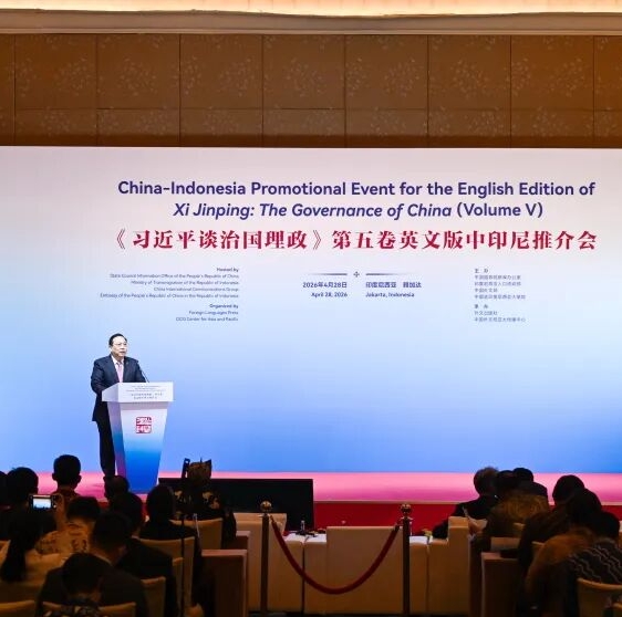 La 28-an de aprilo okazis diskonigo por la angla versio de la kvina volumo de "Xi Jinping: Regado de Ĉinio" en Ĝakarto, Indonezio.