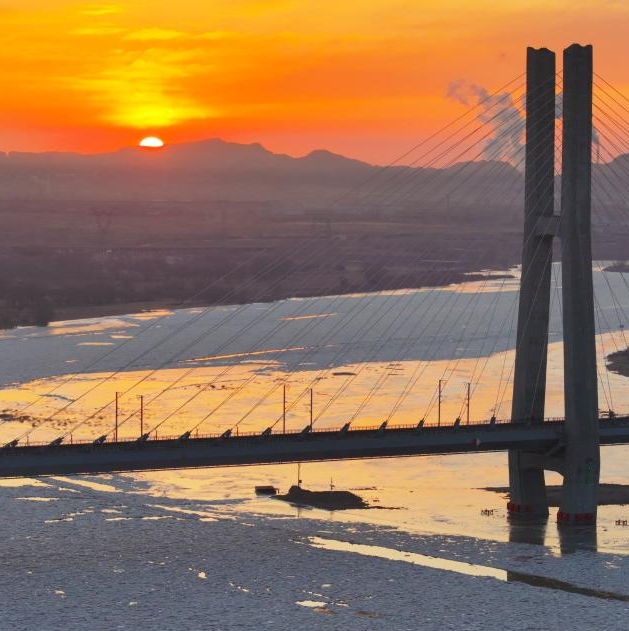 Trafita de malvarmego, sekcio de la Flava Rivero situanta ĉe la limo inter Ningxia kaj la Interna Mongolio, frostiĝis.